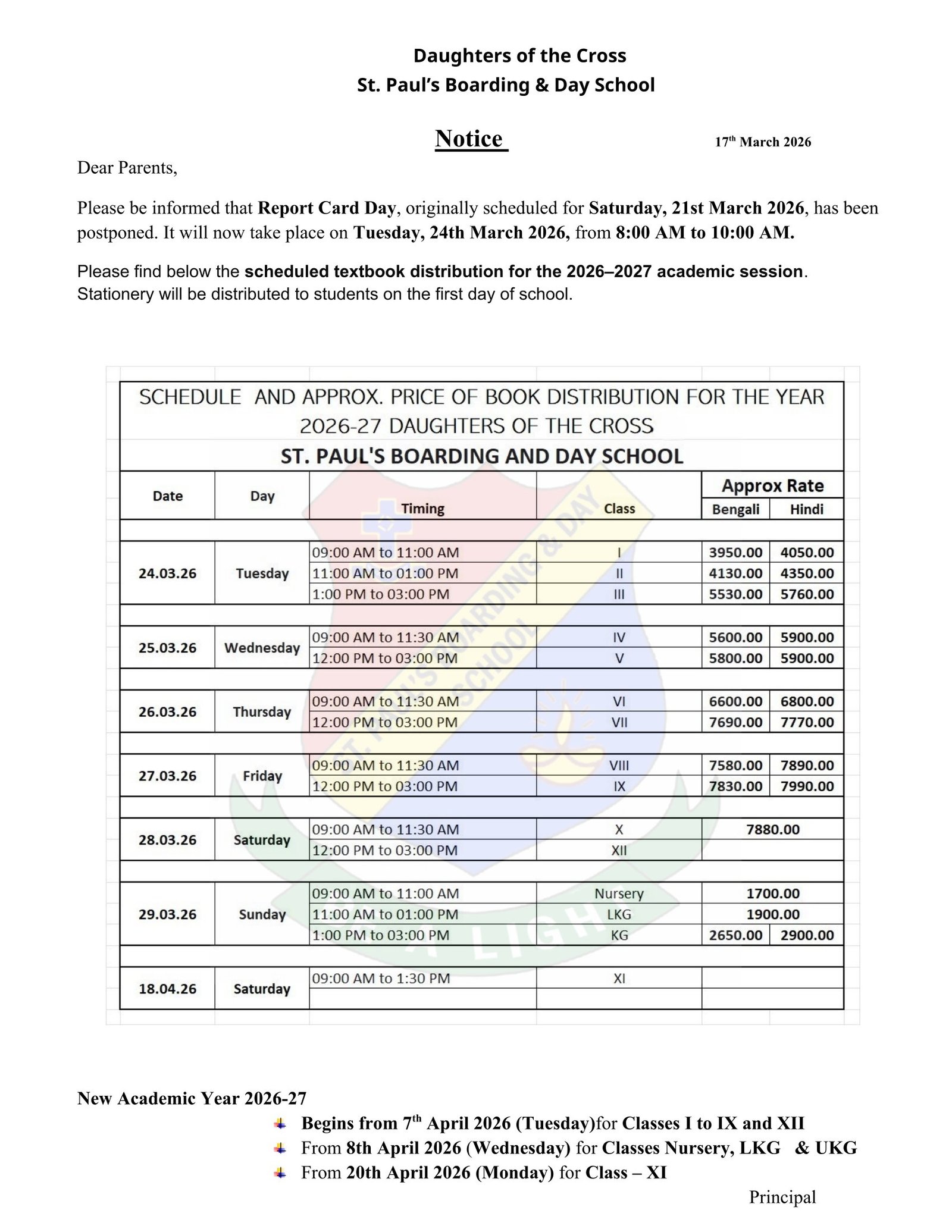 The Daughters of the Cross began St. Paul's Orphanage and school for the Eurasians and Anglo-Indian orphan boys of Calcutta as early as in 1873. However it was in the year 1912 that the school was formally inaugurated by Lady Carmicheal, the wife of the then Governor of Bengal. In 1974 it was upgraded and recognized as ICSE School for Boys. In 2000 the school was recognized as a Senior Secondary affiliated by Indian School Certificate Examination, New Delhi. In 1991, school was open to the girls. The last batch of the boys passed out in 1999 and thereafter the school was only for the girls. St. Paul's Boarding & Day School, founded in Kolkata in 1912 is a Minority School established and administered by the Congregation of the Daughters of the Cross in Roman Catholic Church. The Congregation founded by Blessed Marie Therese Haze in 1833 in Liege, Belgium, has been active in the sphere of education throughout the world, ever since its foundation.